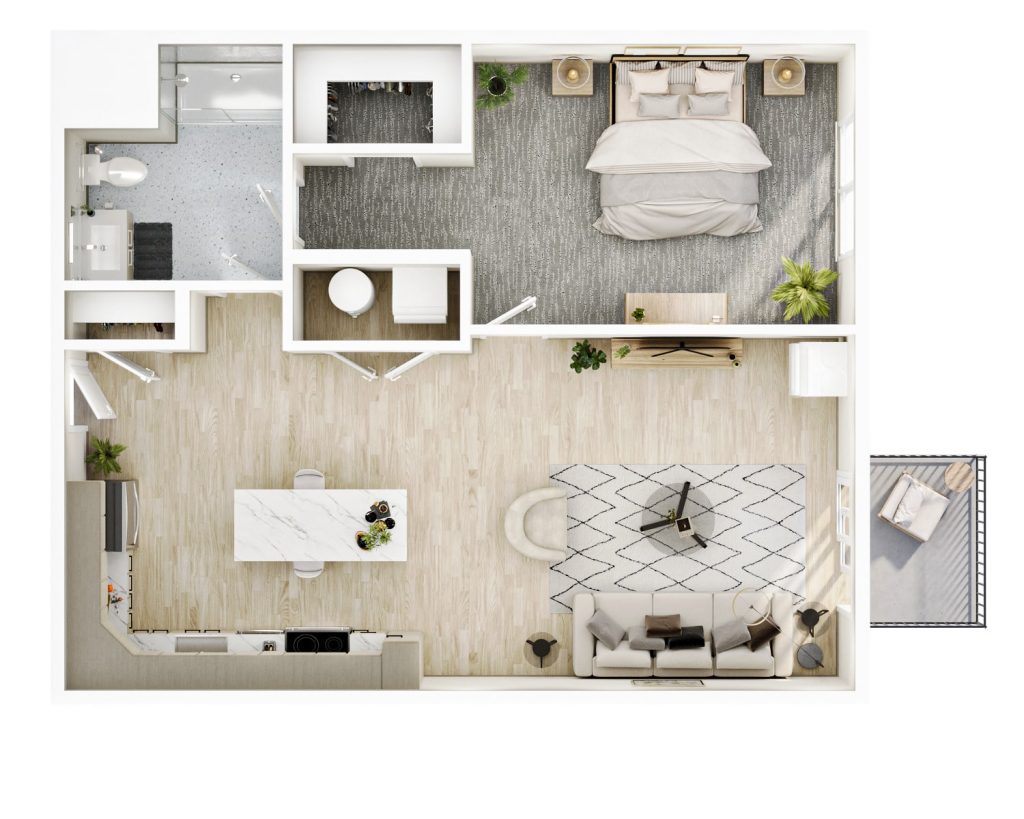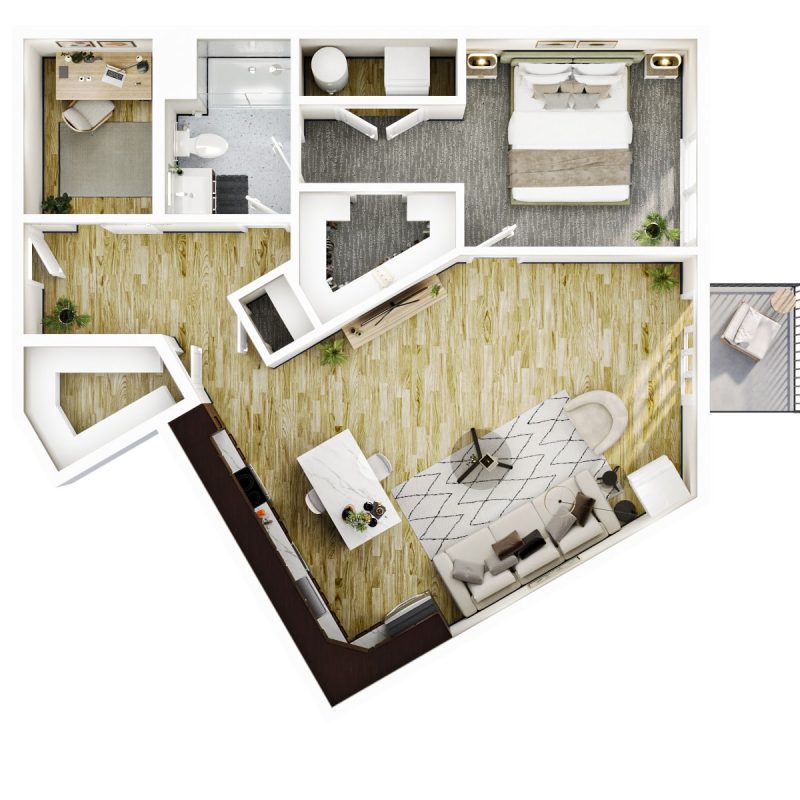 1 BR · 1 Bath · 877 SF