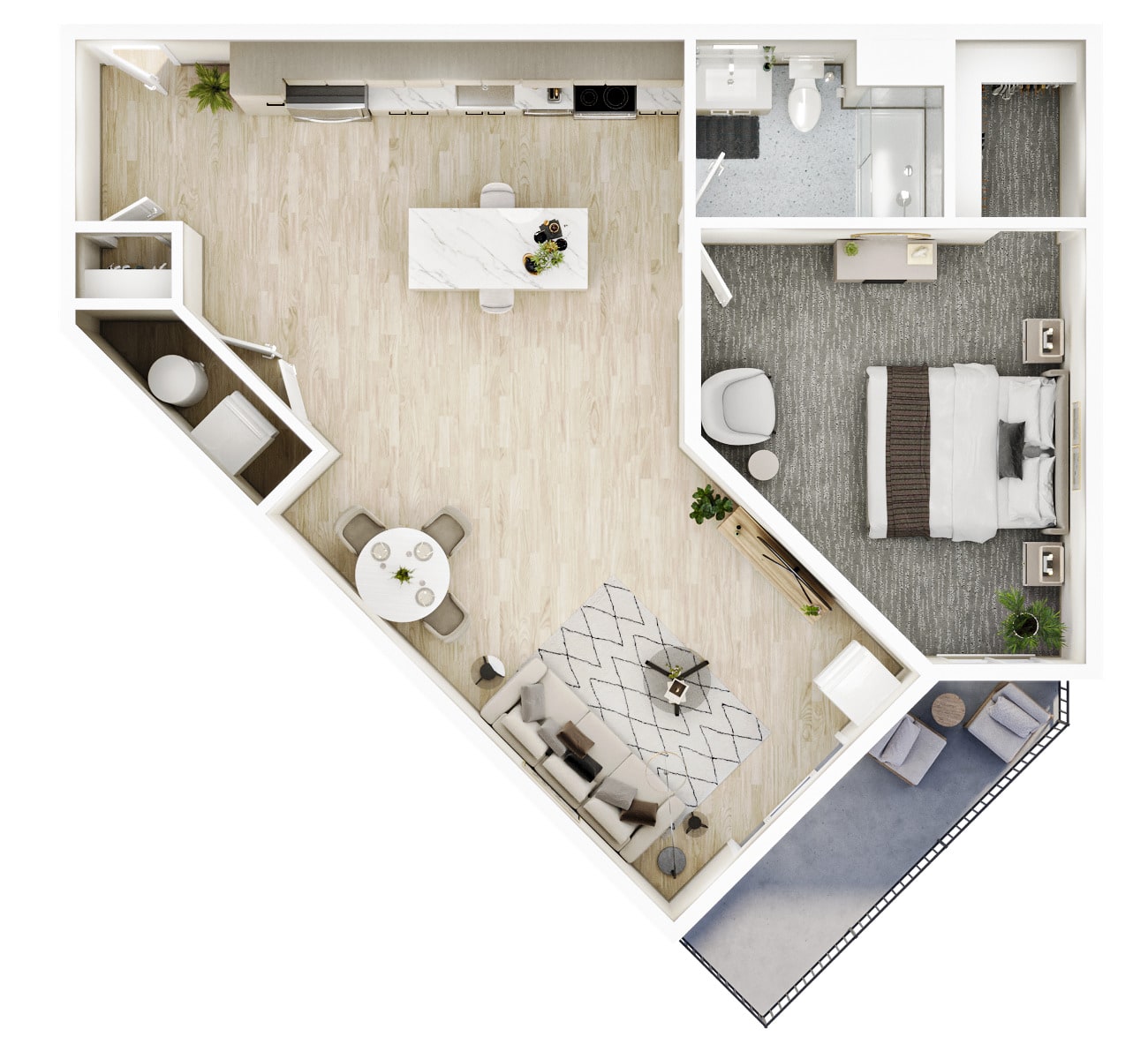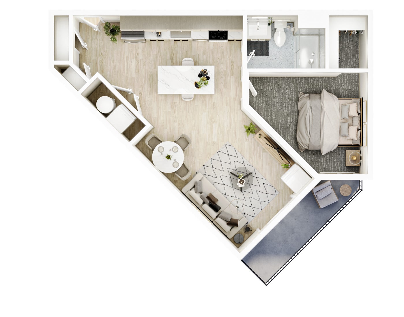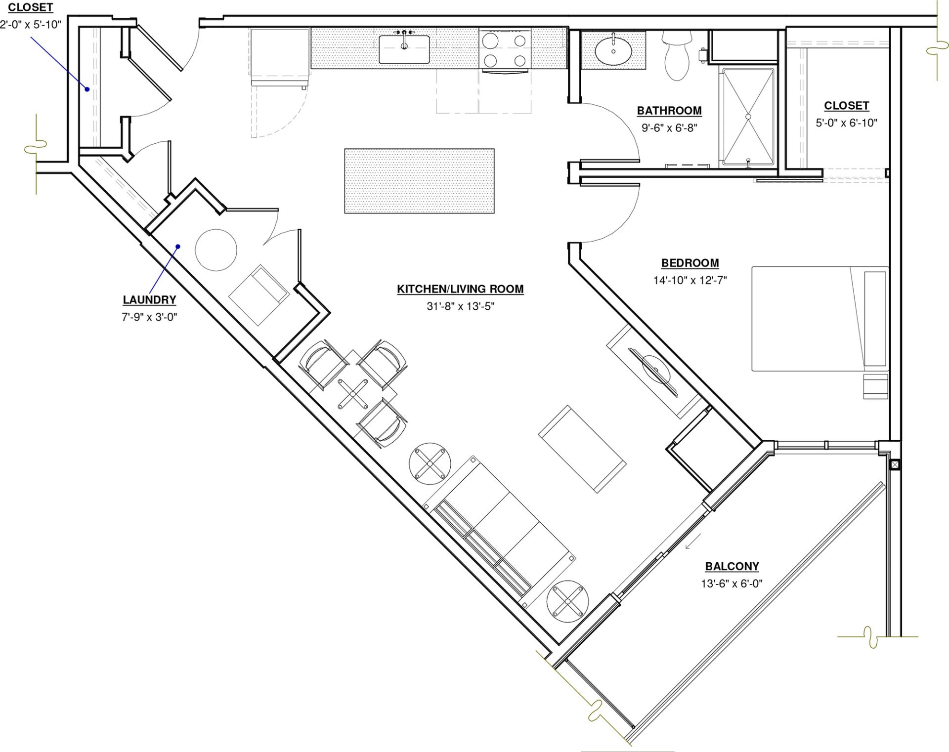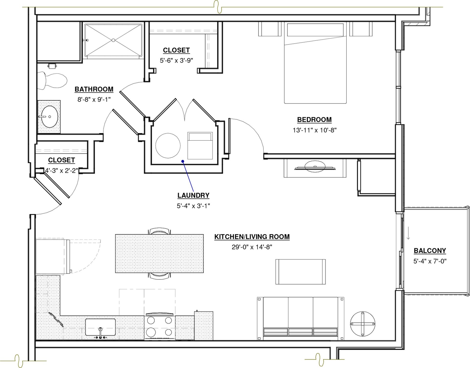 1 BR · 1 Bath · 886 SF