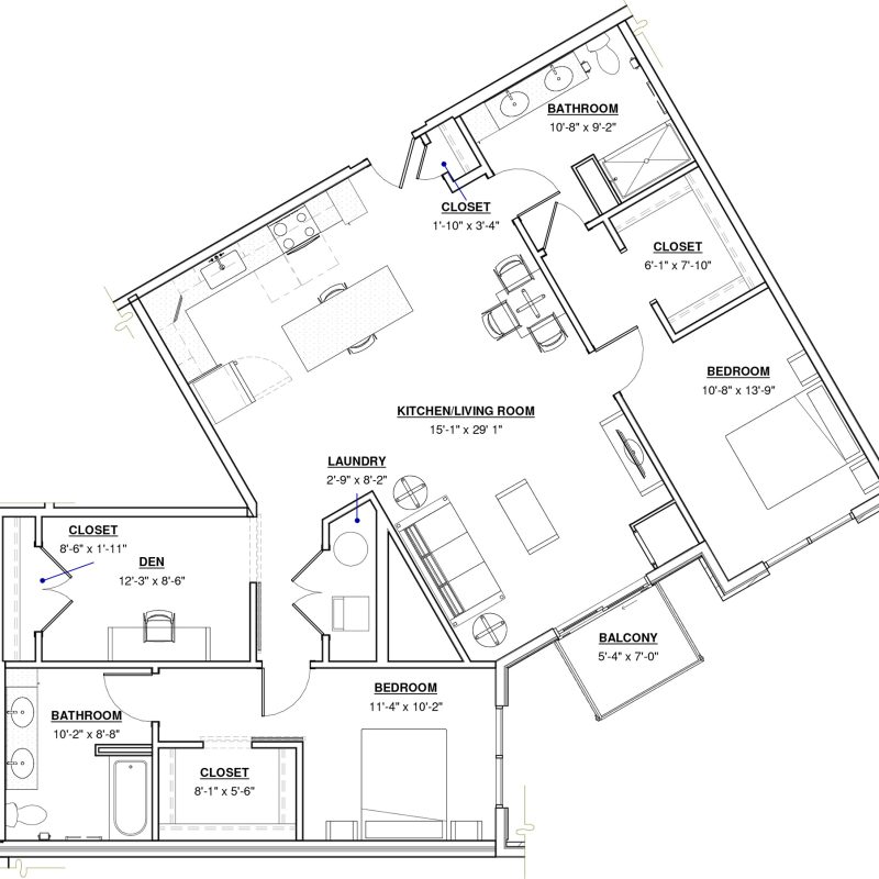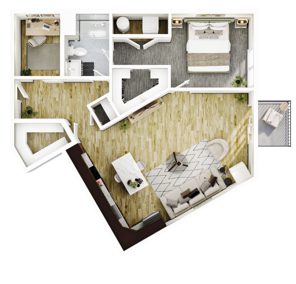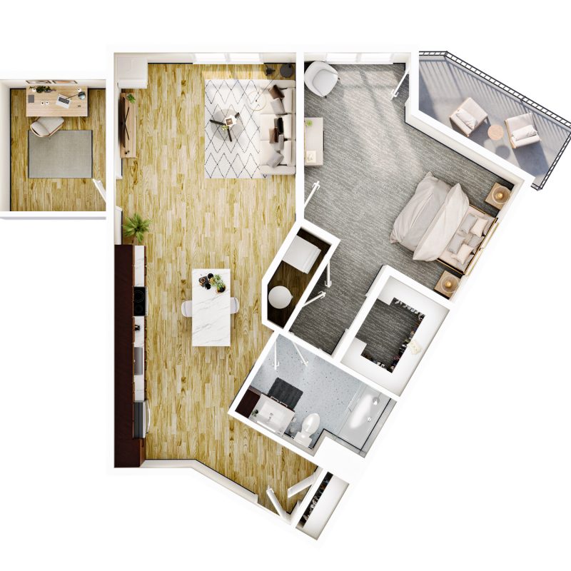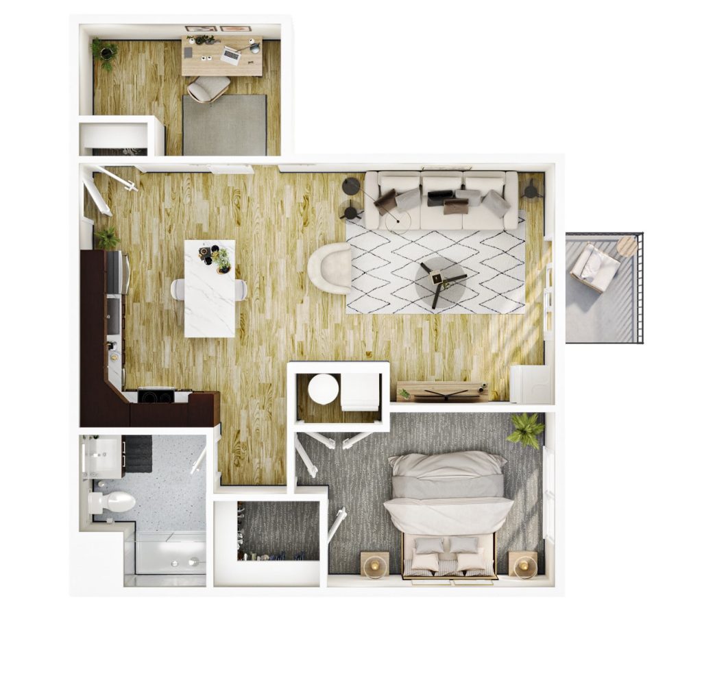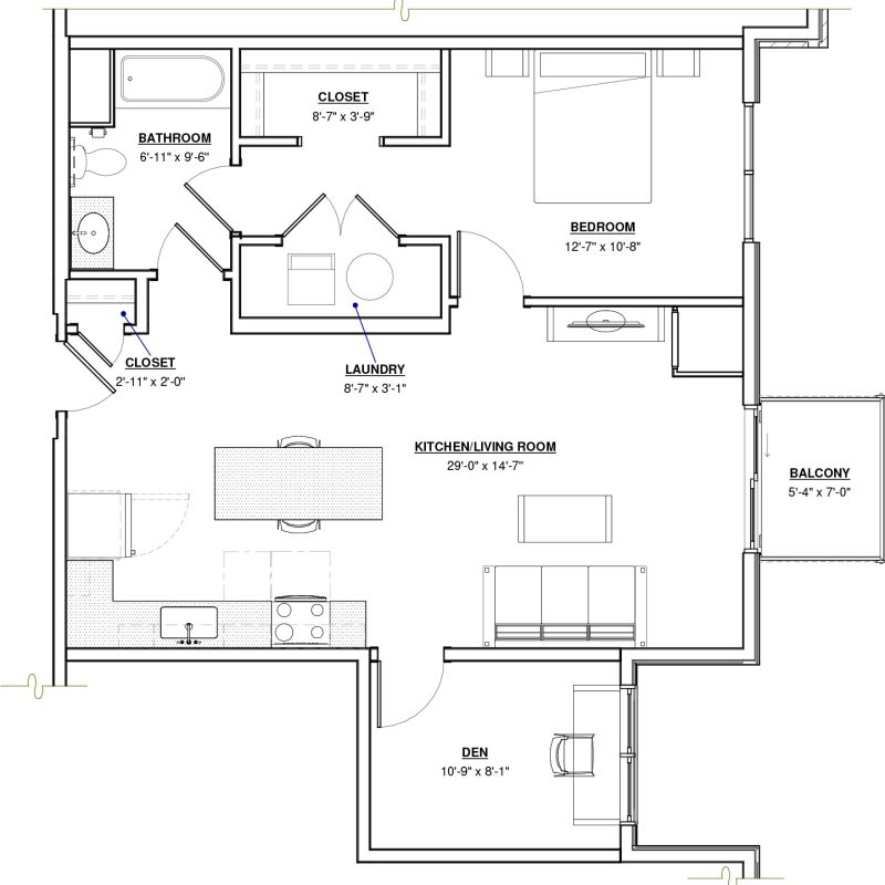 1 BR + Den · 1 Bath · 1,074 SF