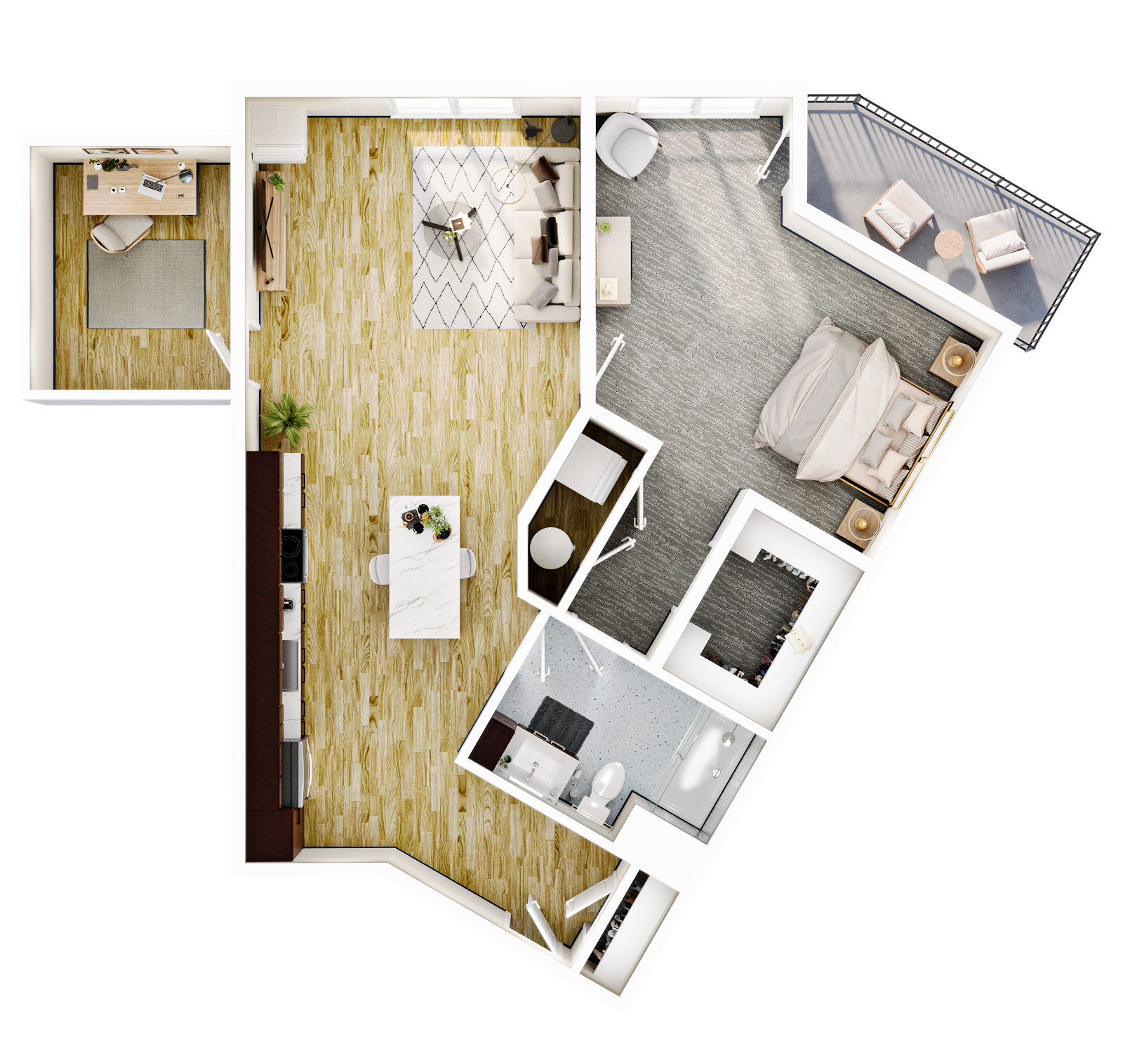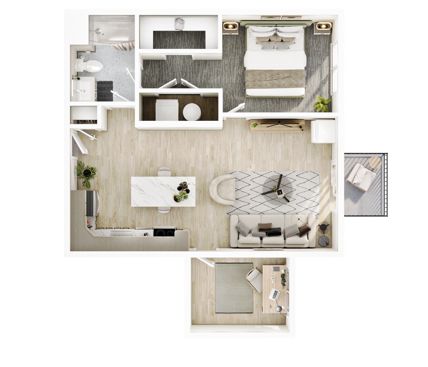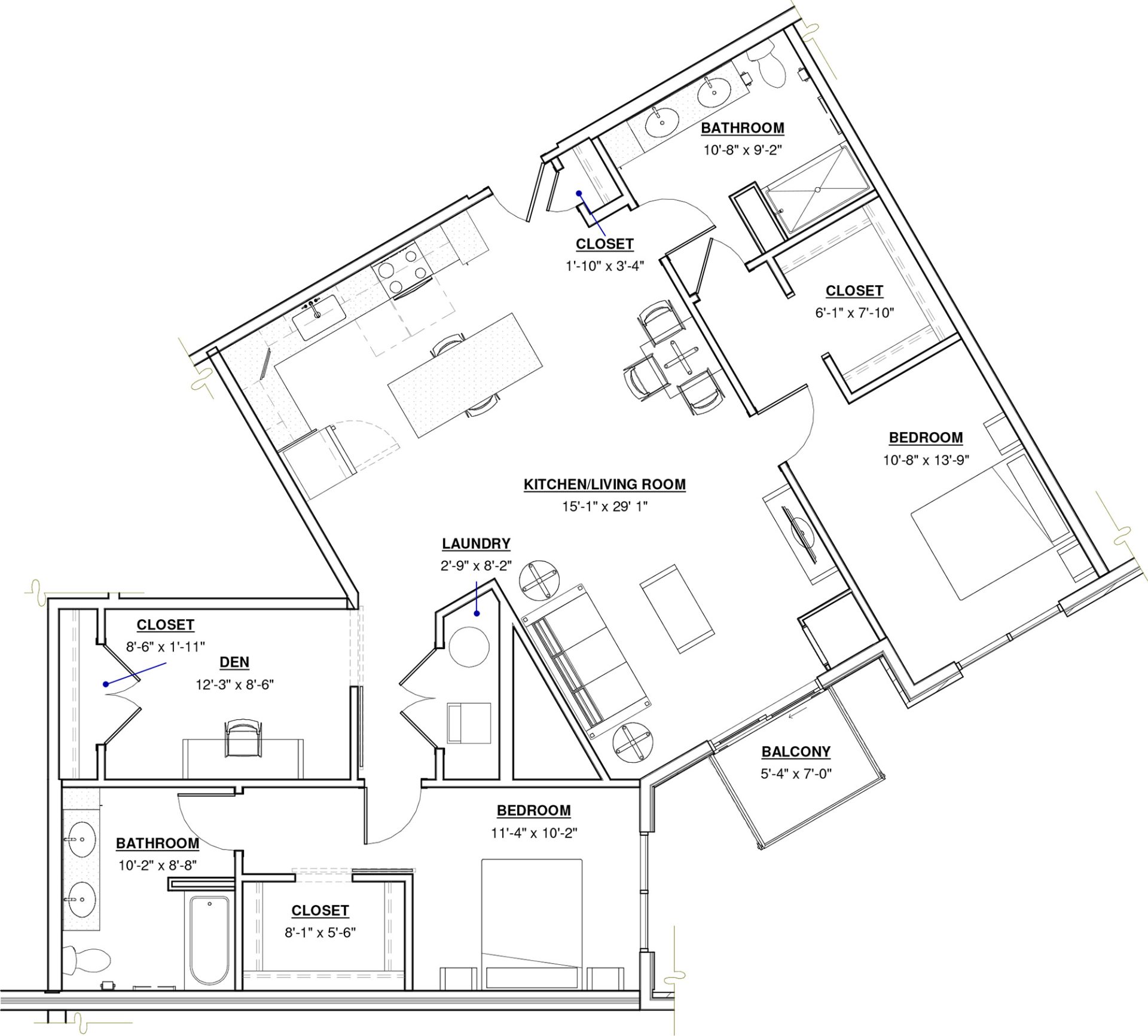 1 BR + Den · 1 Bath · 1,074 SF