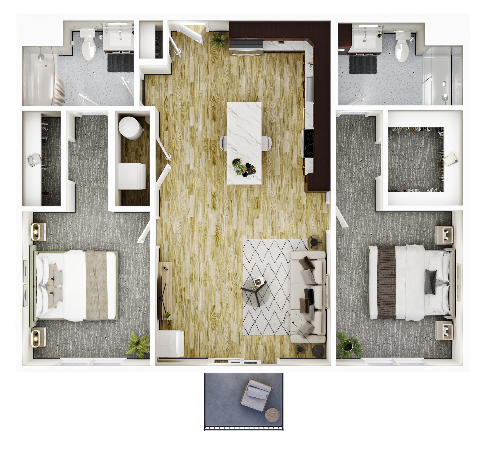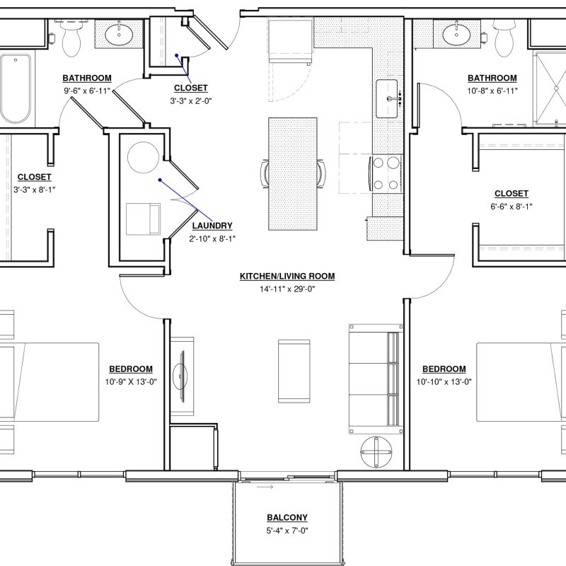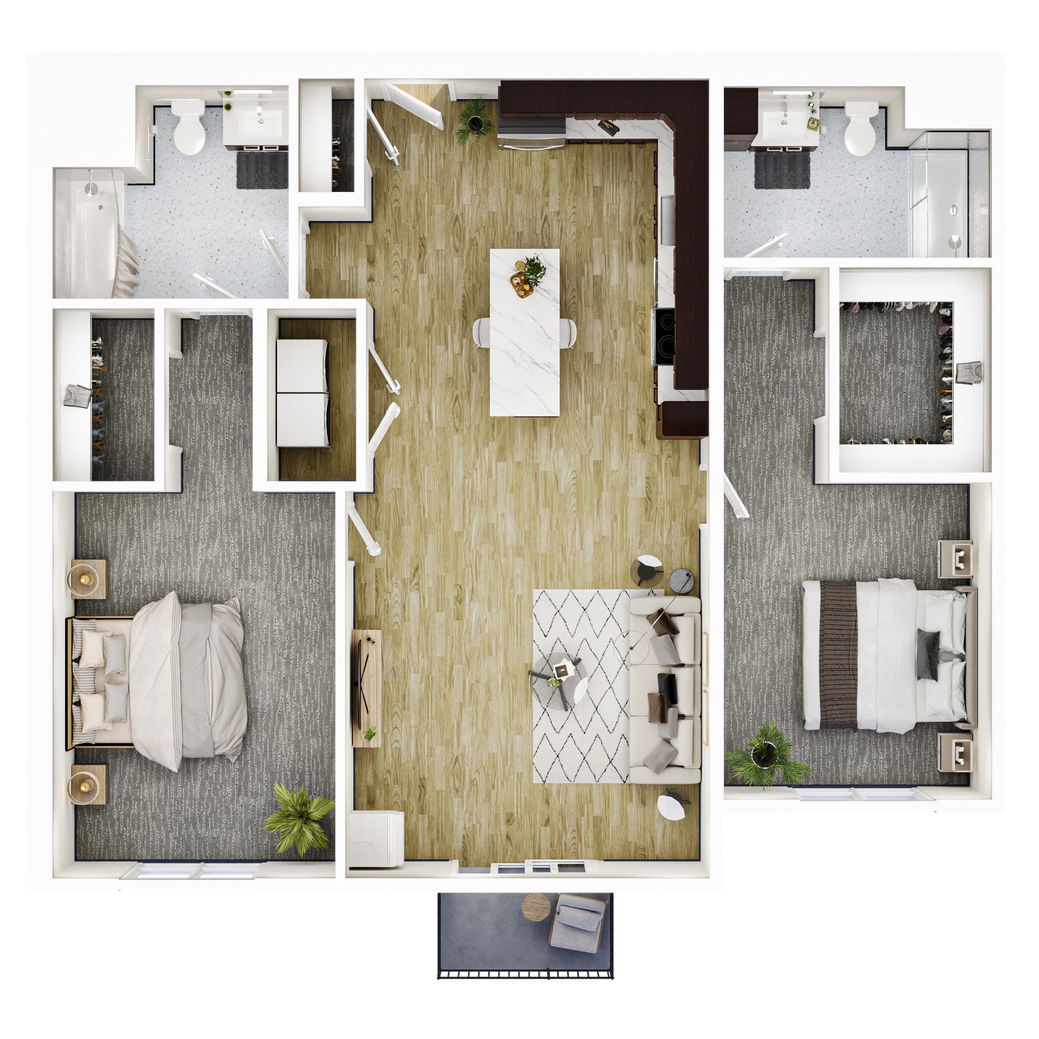 2 BR · 2 Bath · 1,136 SF