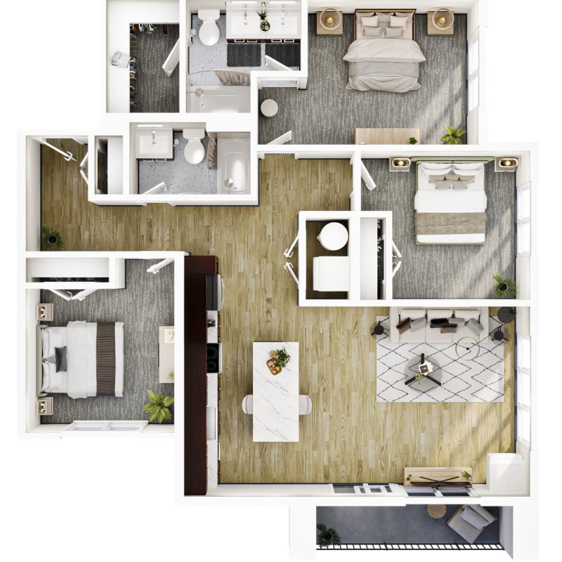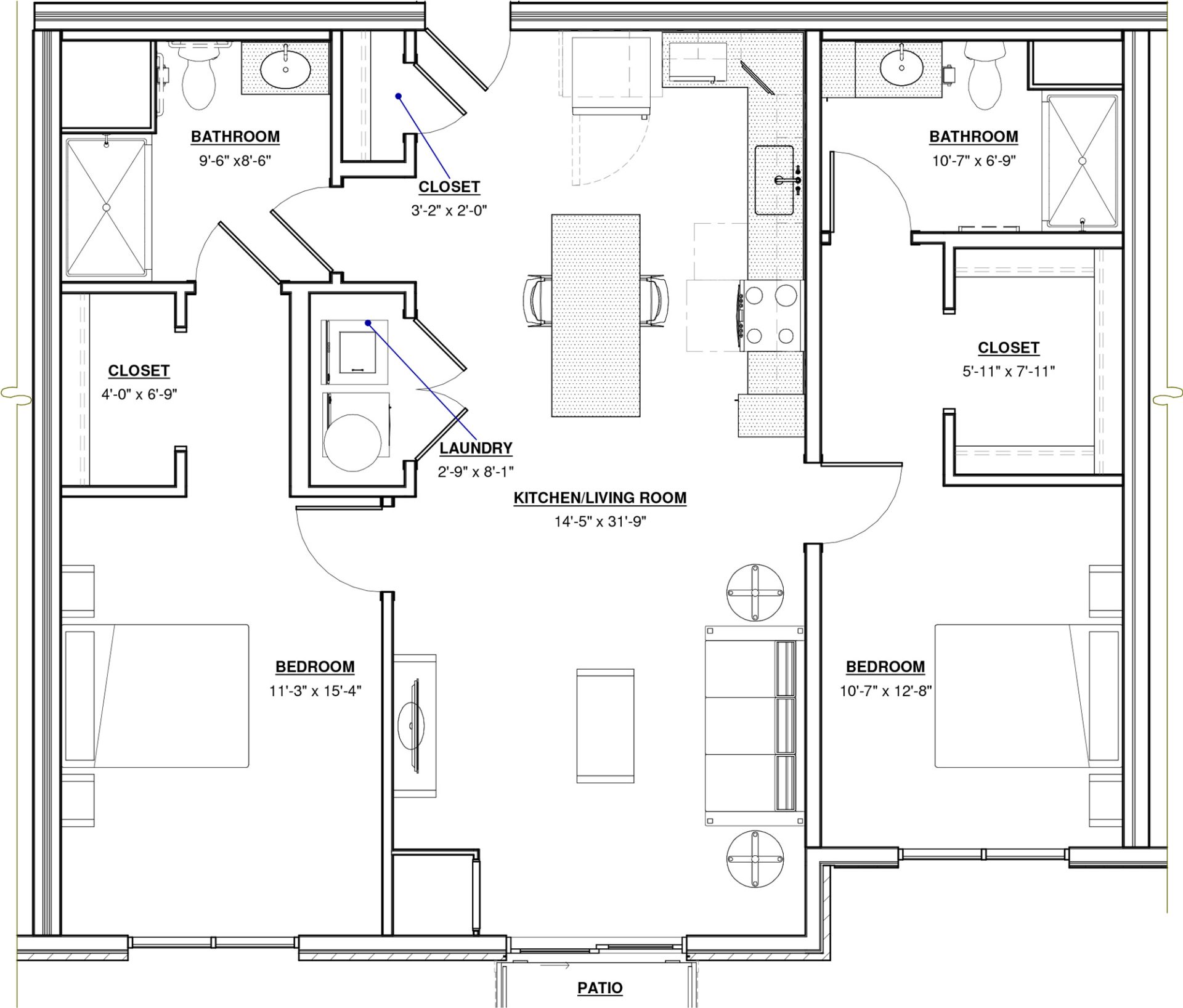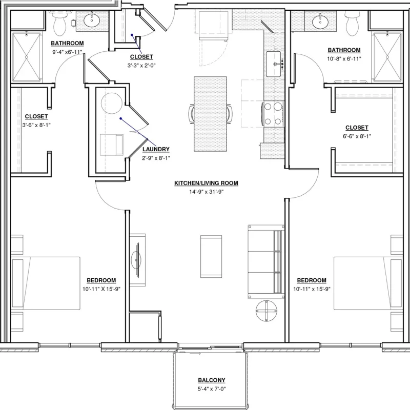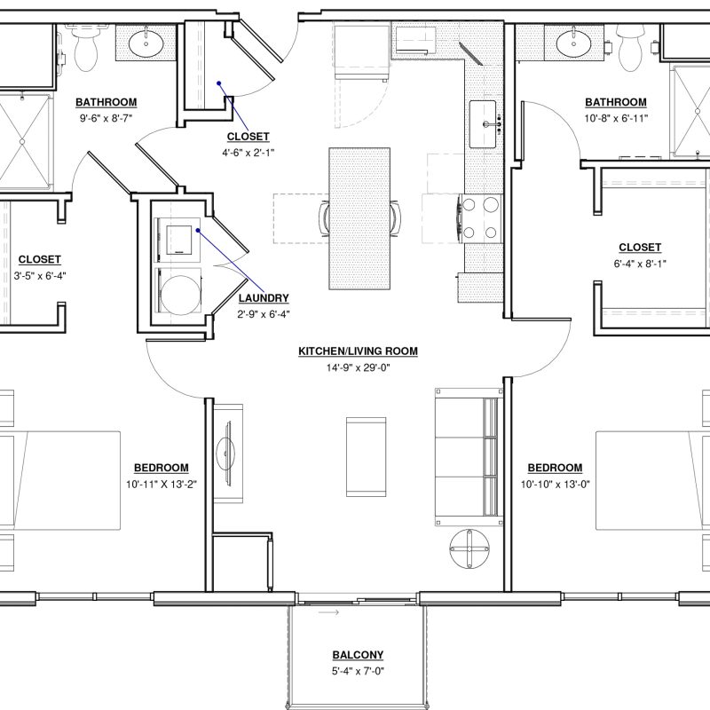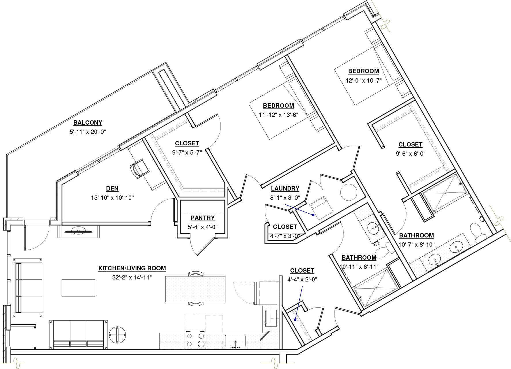 2 BR · 2 Bath · 1,213 SF