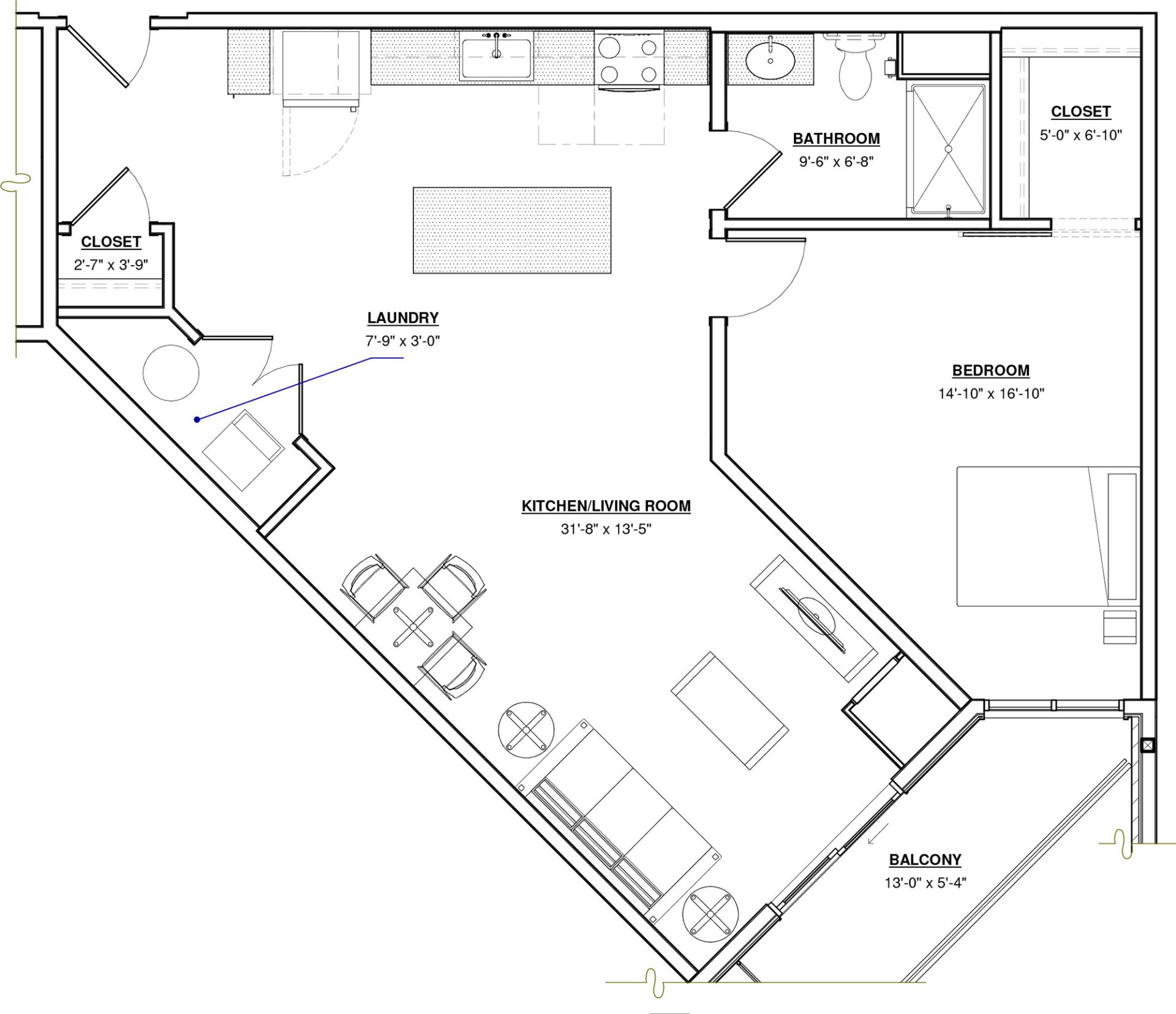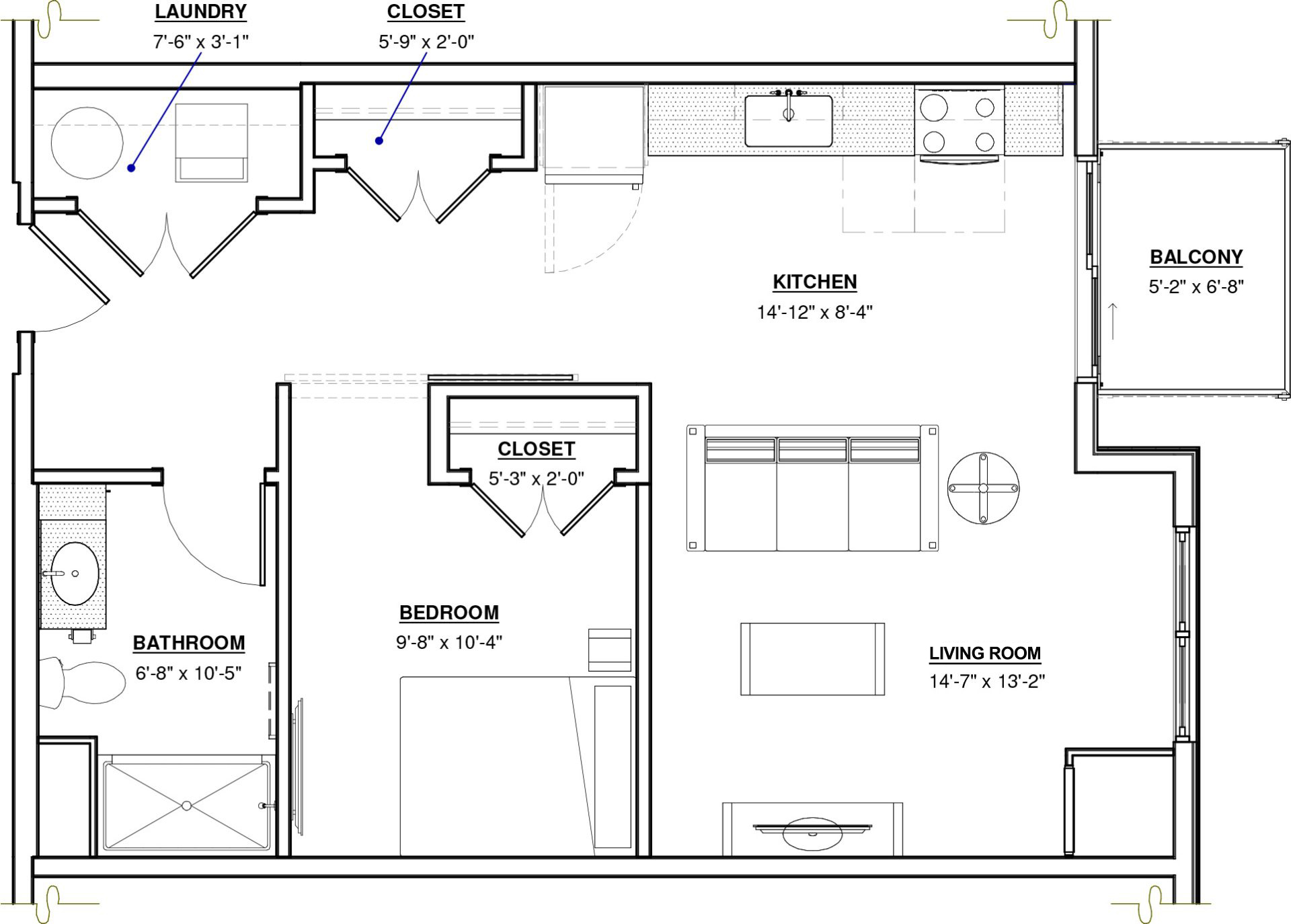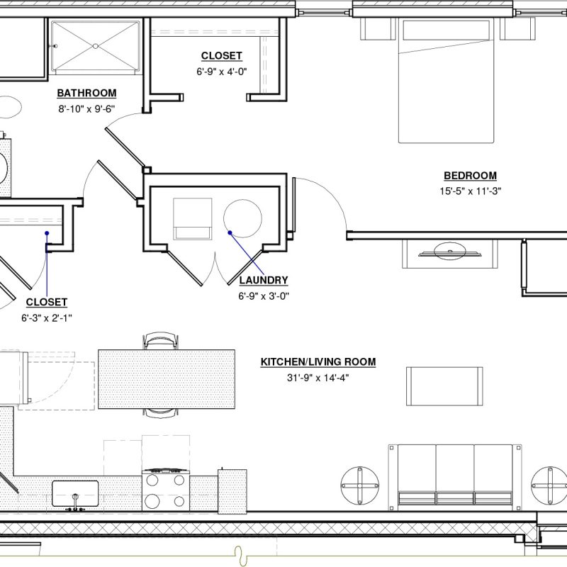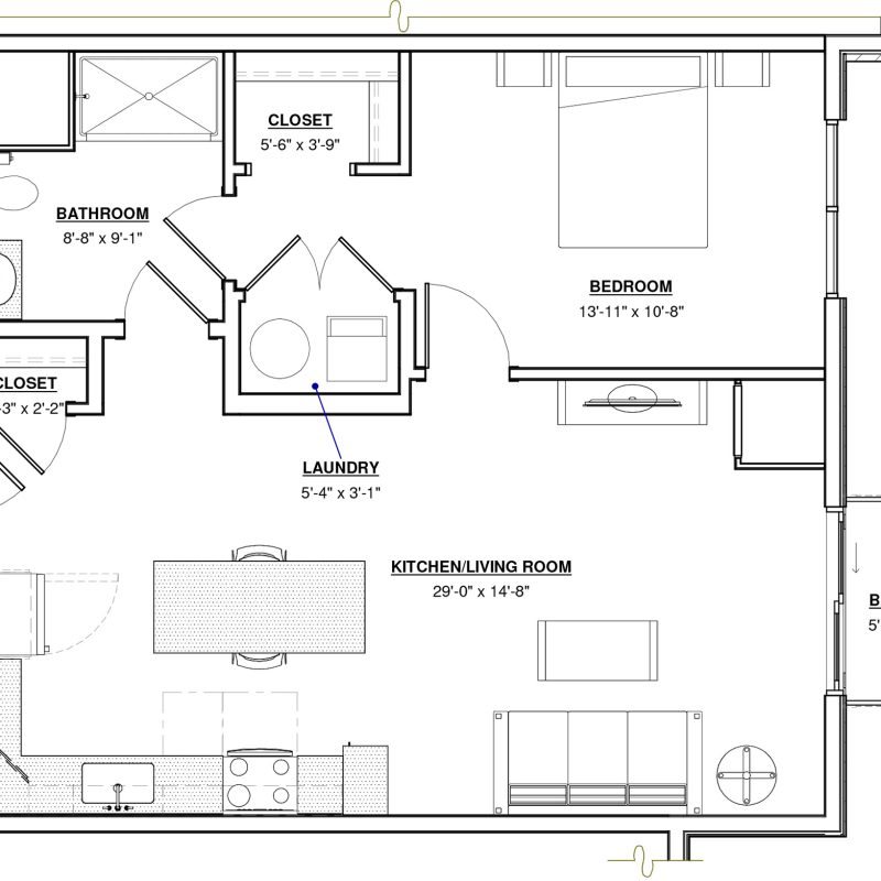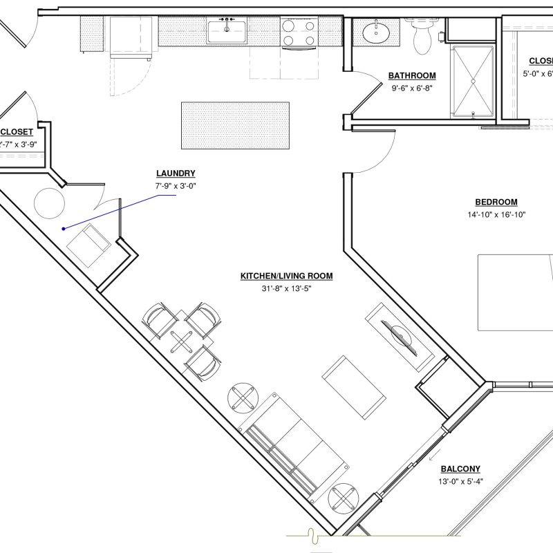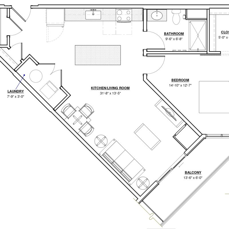 1 BR · 1 Bath · 793 SF