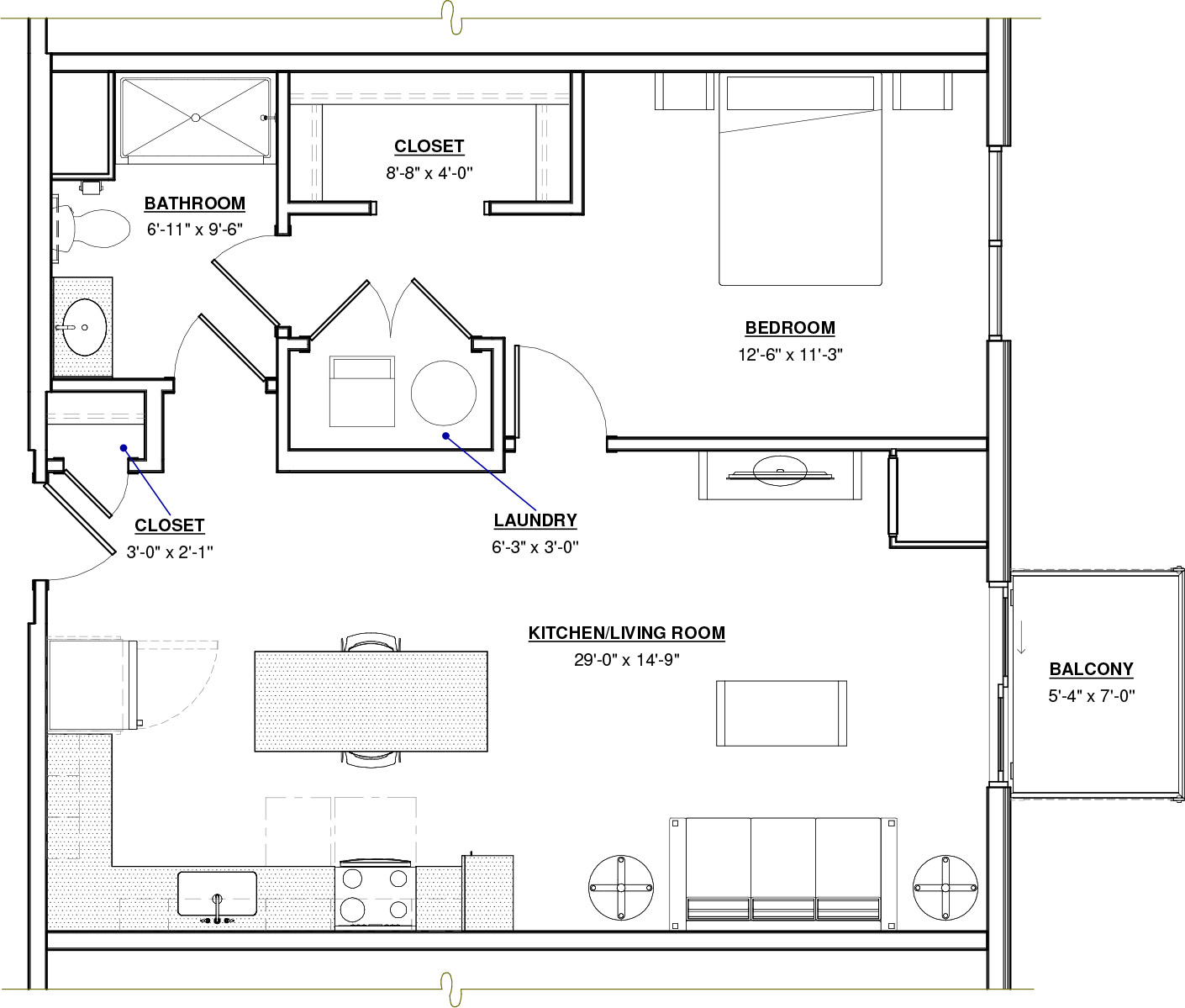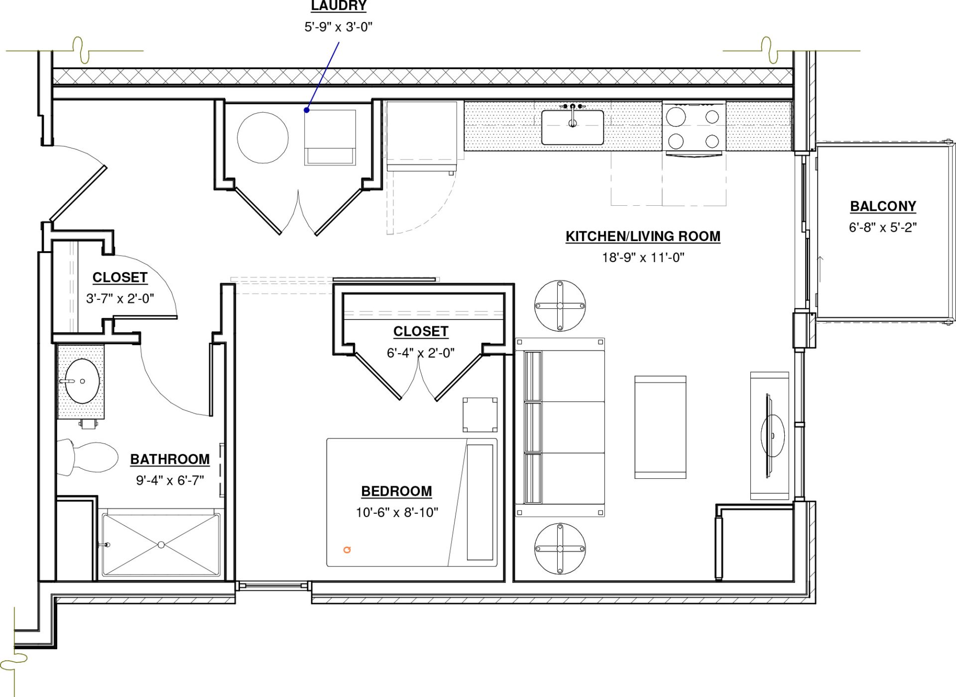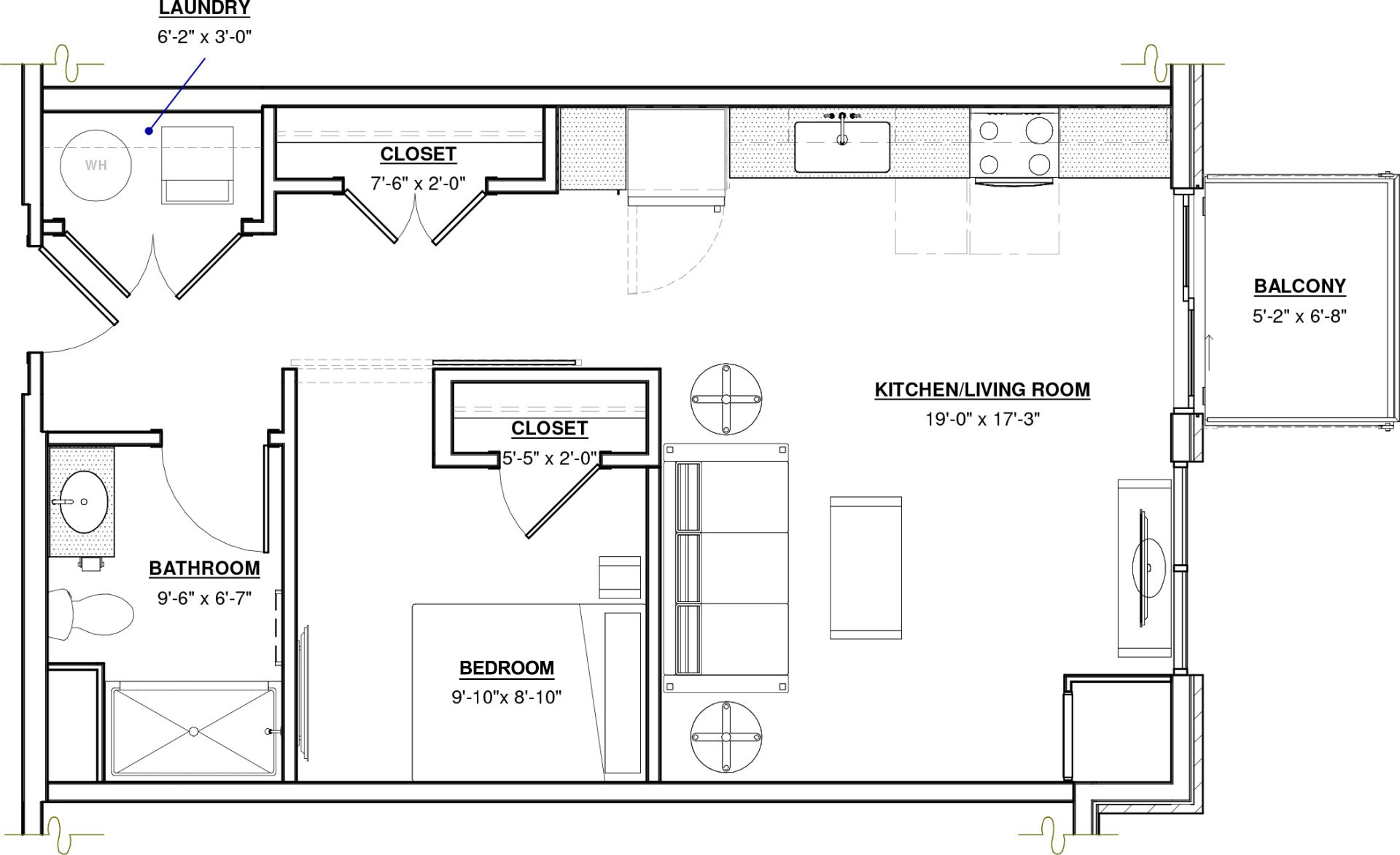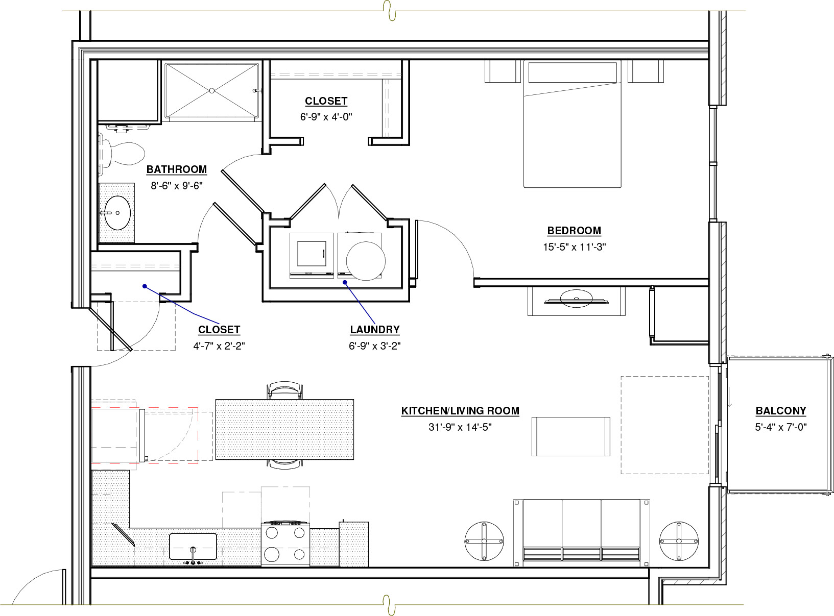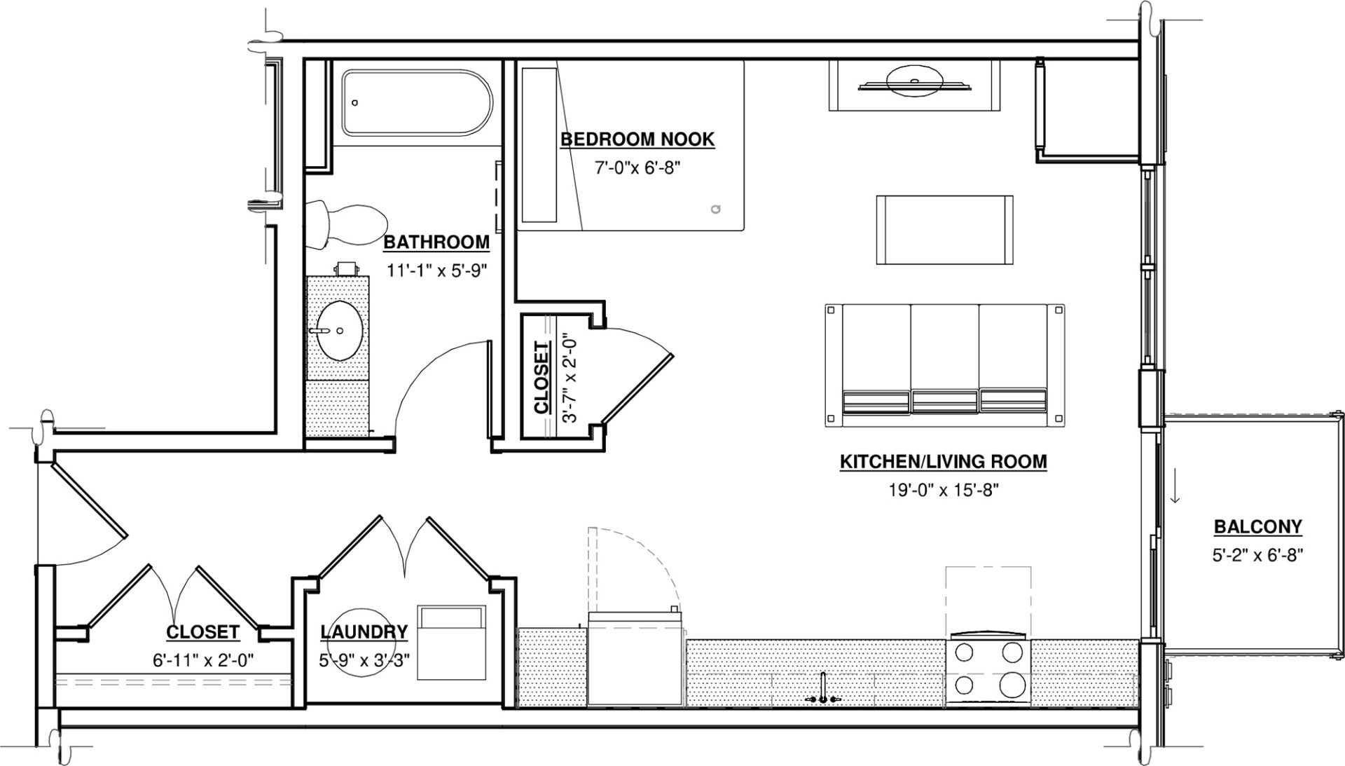 Convertible · 1 Bath · 586 SF