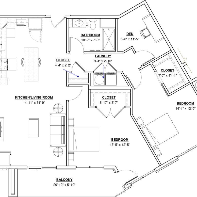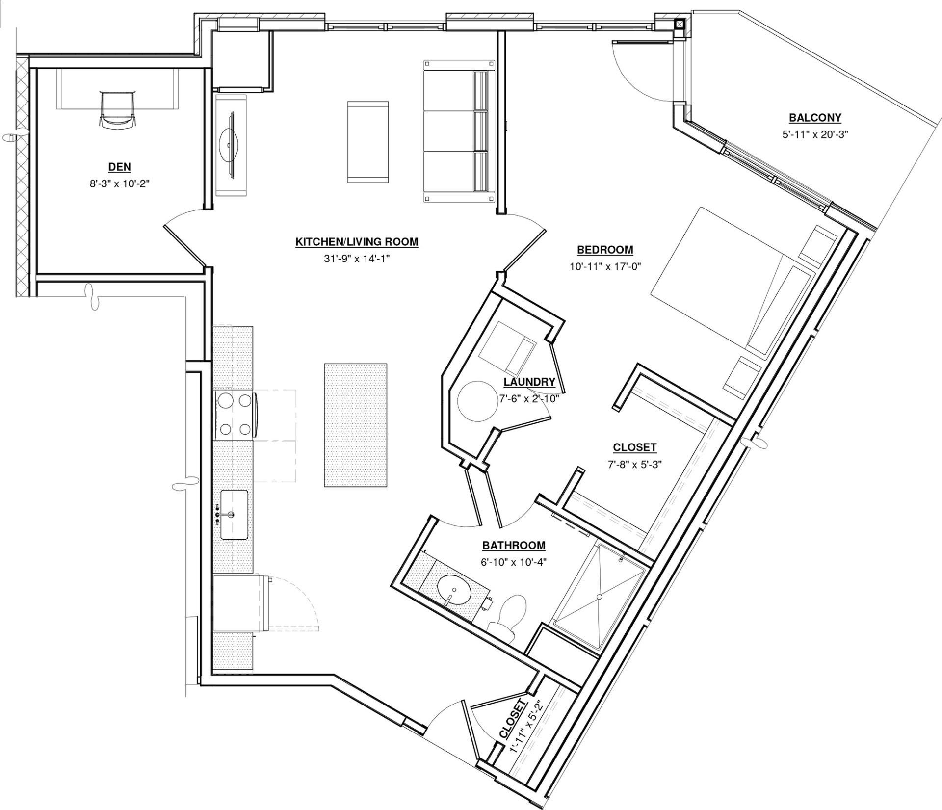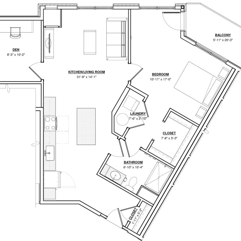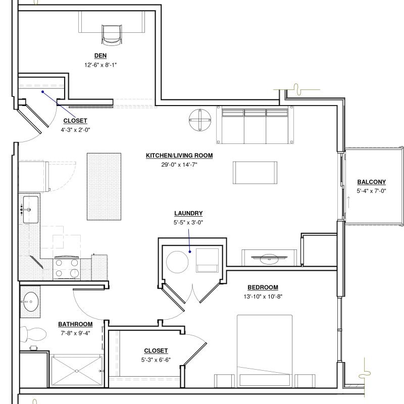 1 BR + Den · 1 Bath · 903 SF