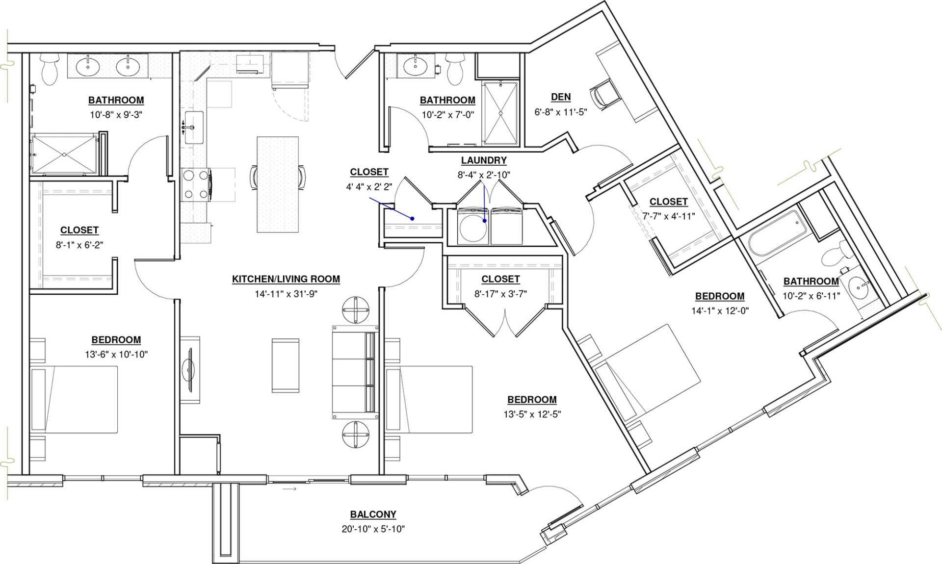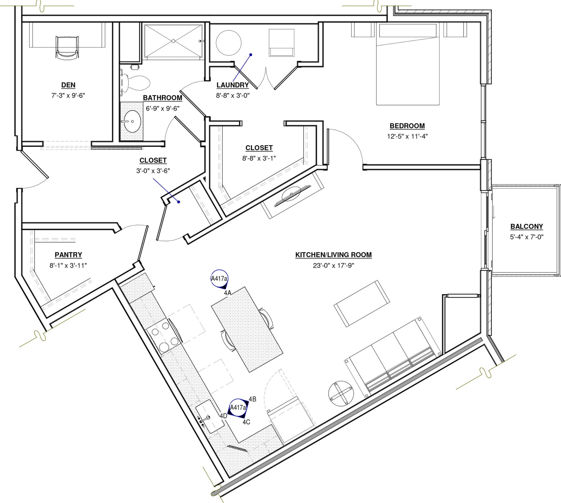 1 BR + Den · 1 Bath · 893 SF