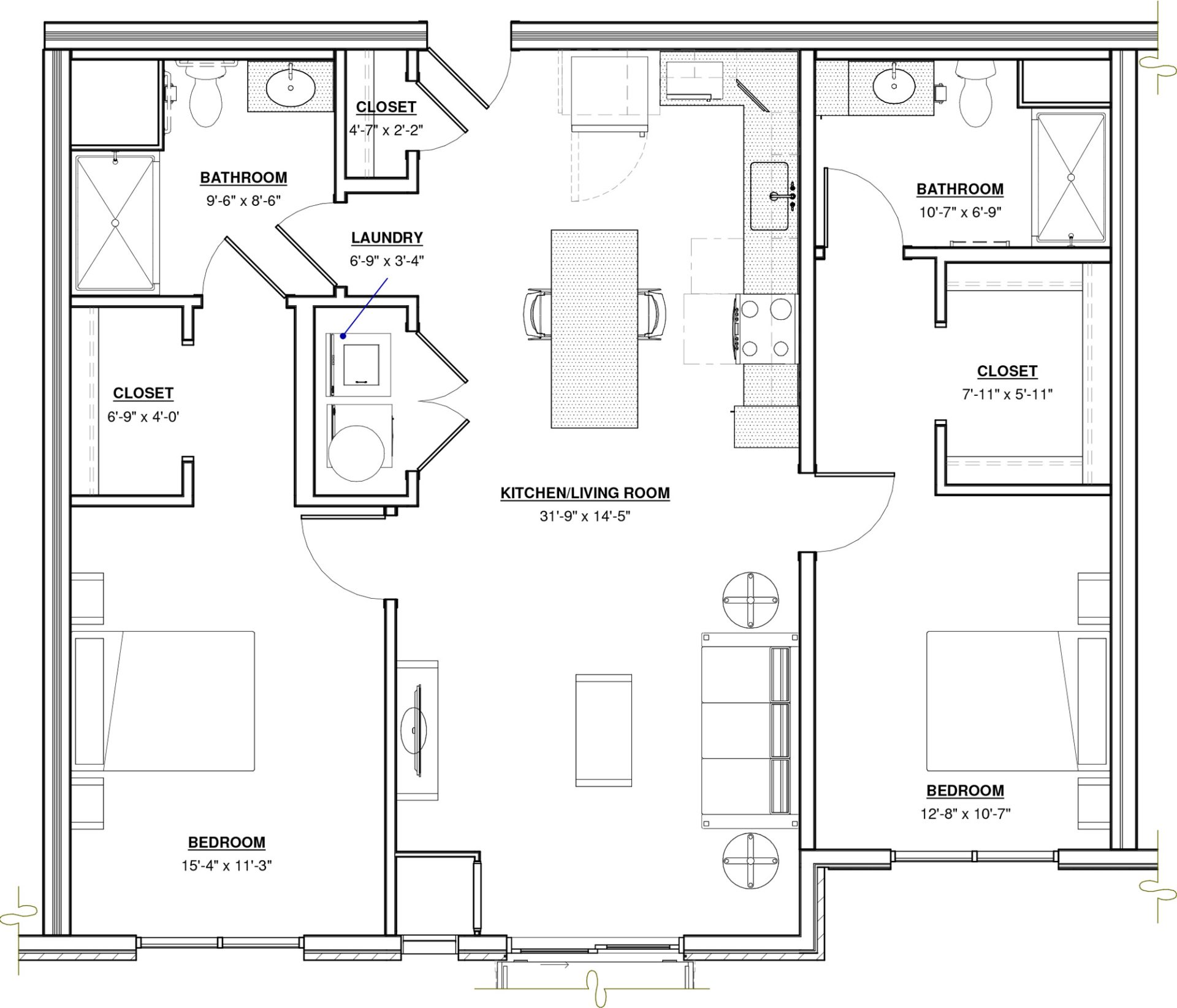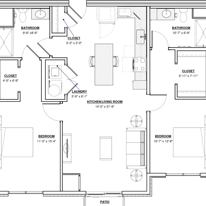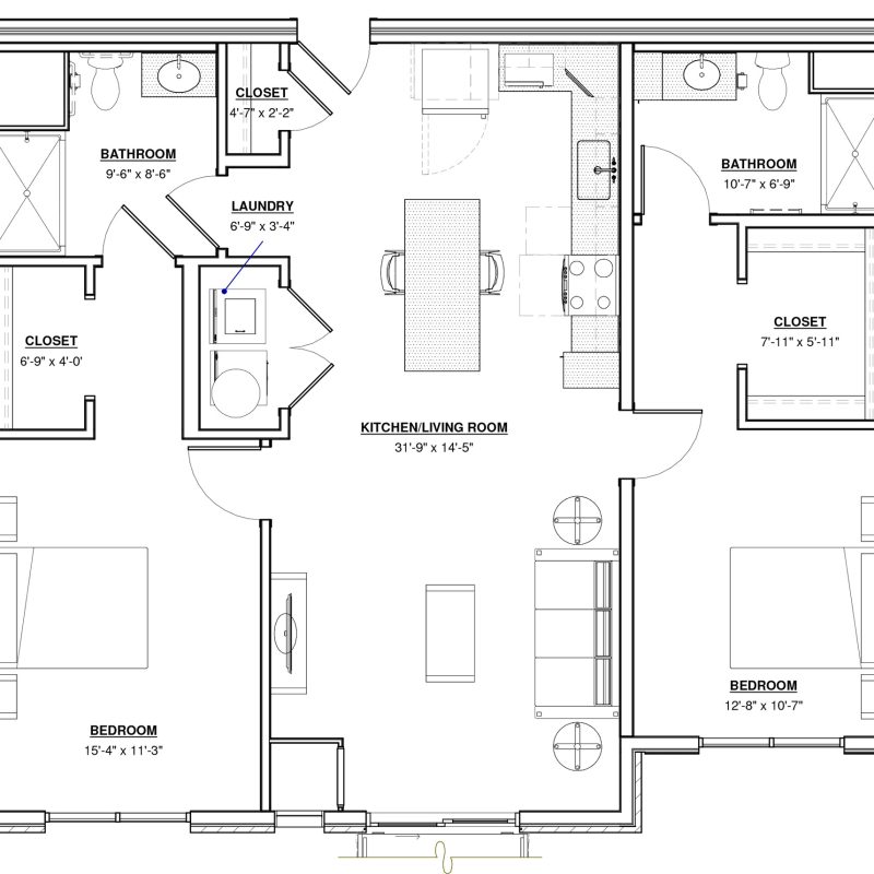 2 BR · 2 Bath · 1,240 SF