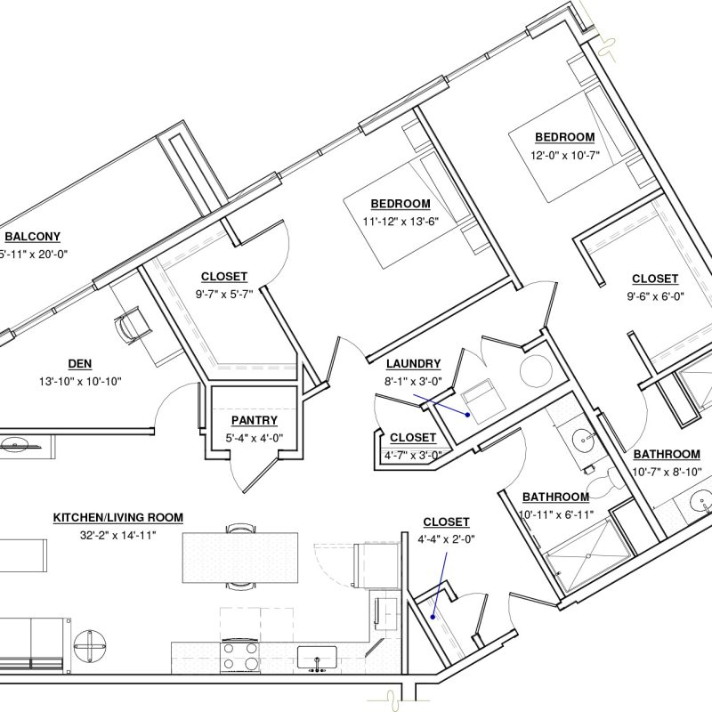 2 BR + Den · 2 Bath · 1,490 SF