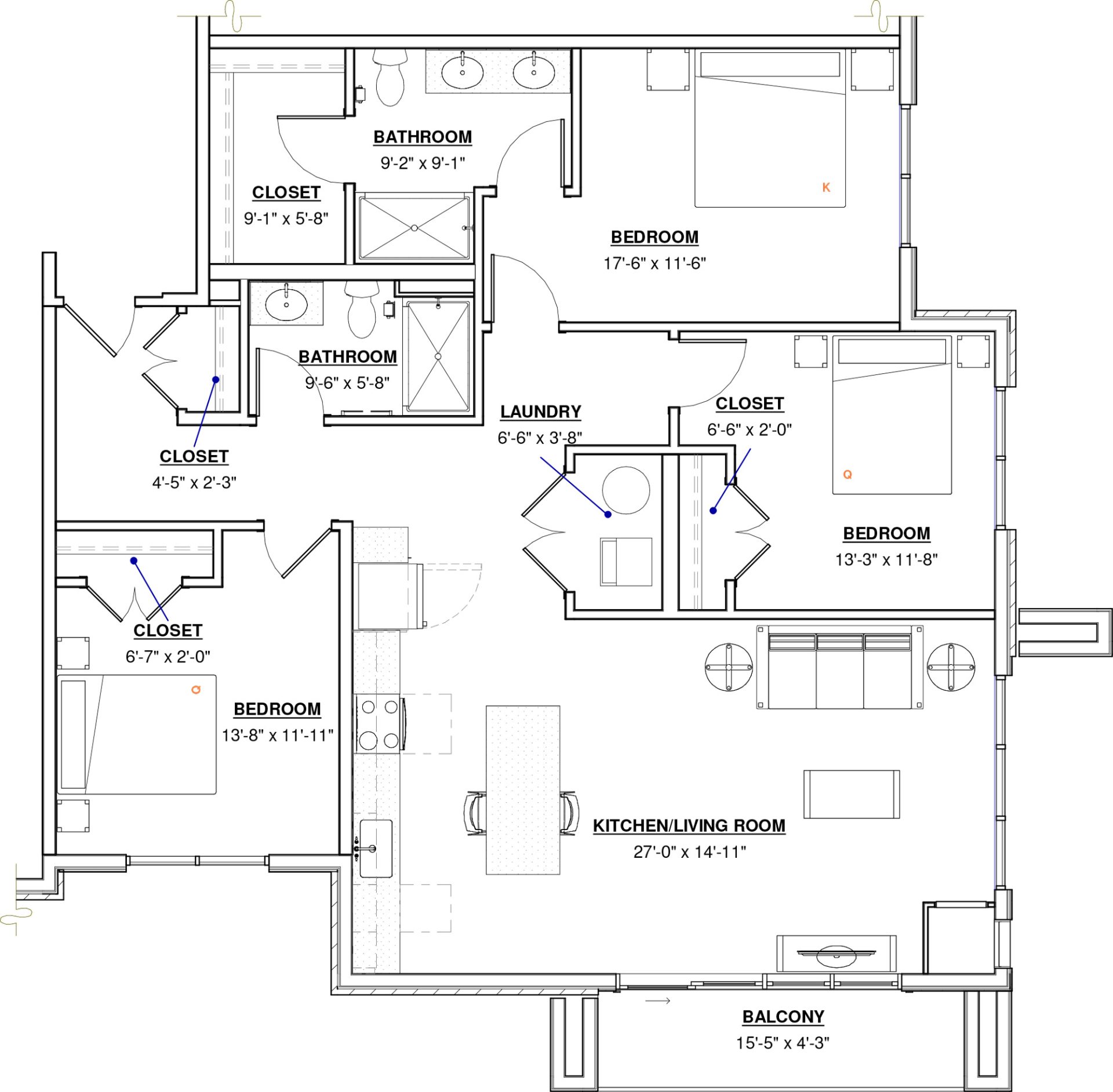 3 BR · 2 Bath · 1,422 SF